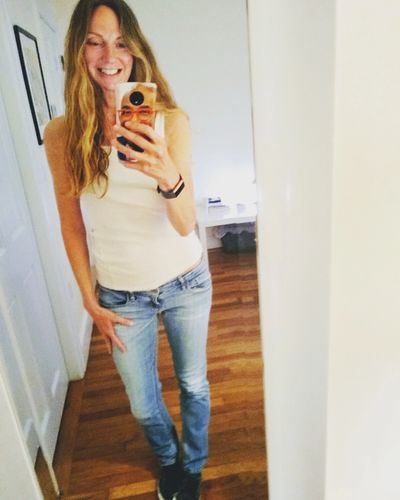 What does 50 look like? Well, there’s some wrinkles, quite a bit of wiry white hair, and I’ve noticed a lot of “Jane Seymour’s Crepe Erase” ads suddenly appearing on my Facebook feed. (How does it know???) But there’s also muscle tone from daily workouts, a definitive style and comfort with myself, and a radiant smile.